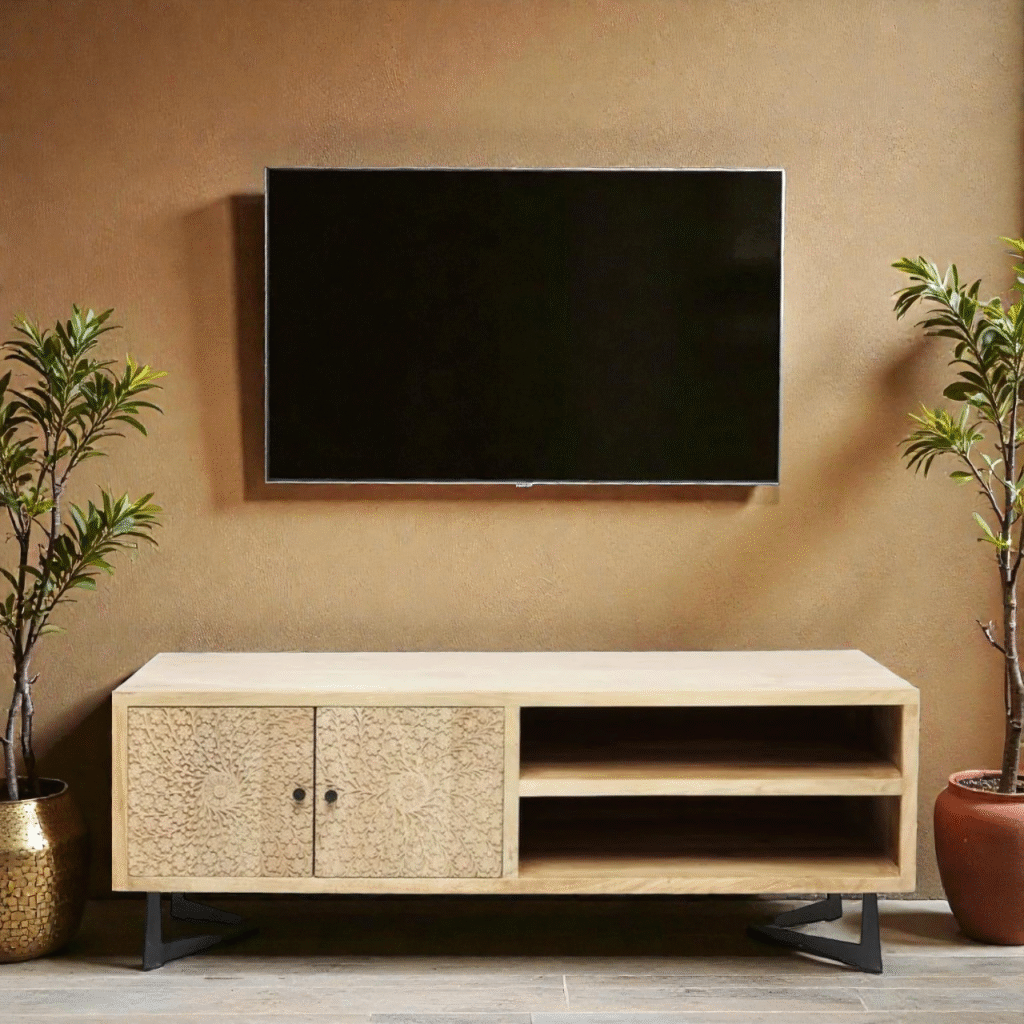 Aarav Solid Mango Wood TV Stand – Handcrafted Rustic TV Unit for Modern Living Rooms