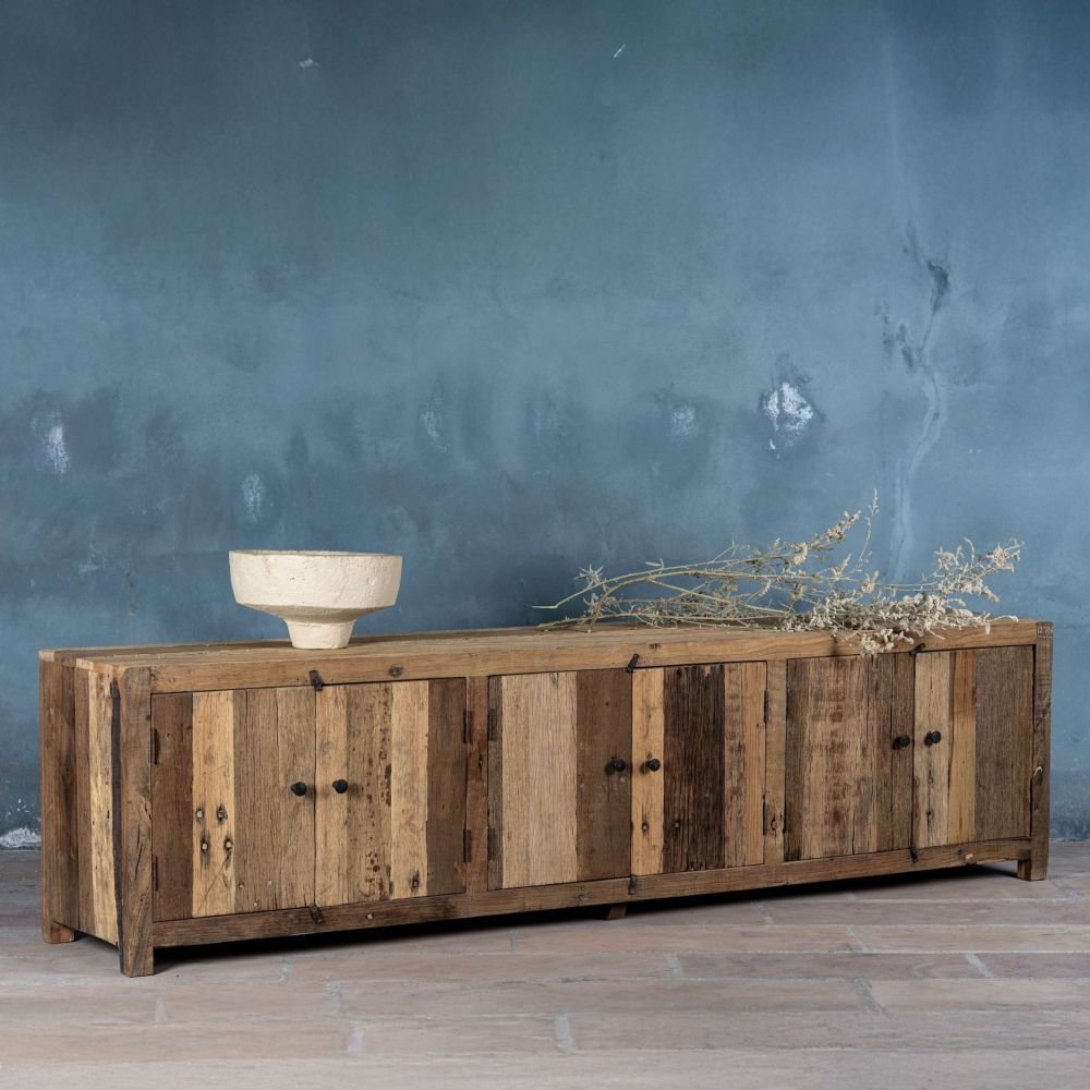 ₹36,900.00 – ₹37,900.00Price range: ₹36,900.00 through ₹37,900.00Orviano – Rustic Minimalistic Reclaimed Wood Lowboard (230cm) | Solid Wood Long TV Console & Storage Unit