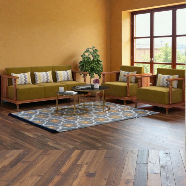 Aarav Heritage Solid Wood 3+1+1 Sofa Set | Premium Wooden Sofa Set India