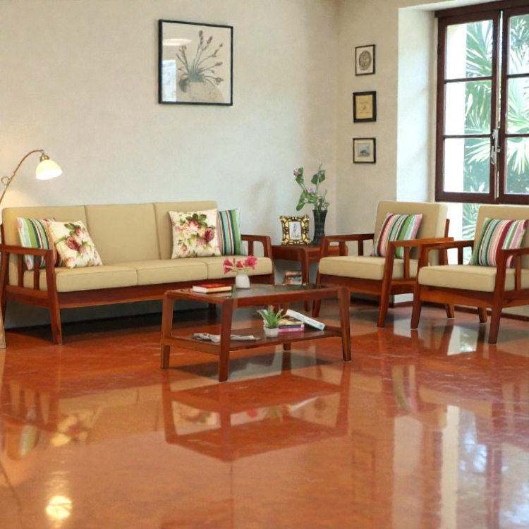 Aarav Heritage Solid Wood 3+1+1 Sofa Set | Natural Wooden Sofa for Living Room