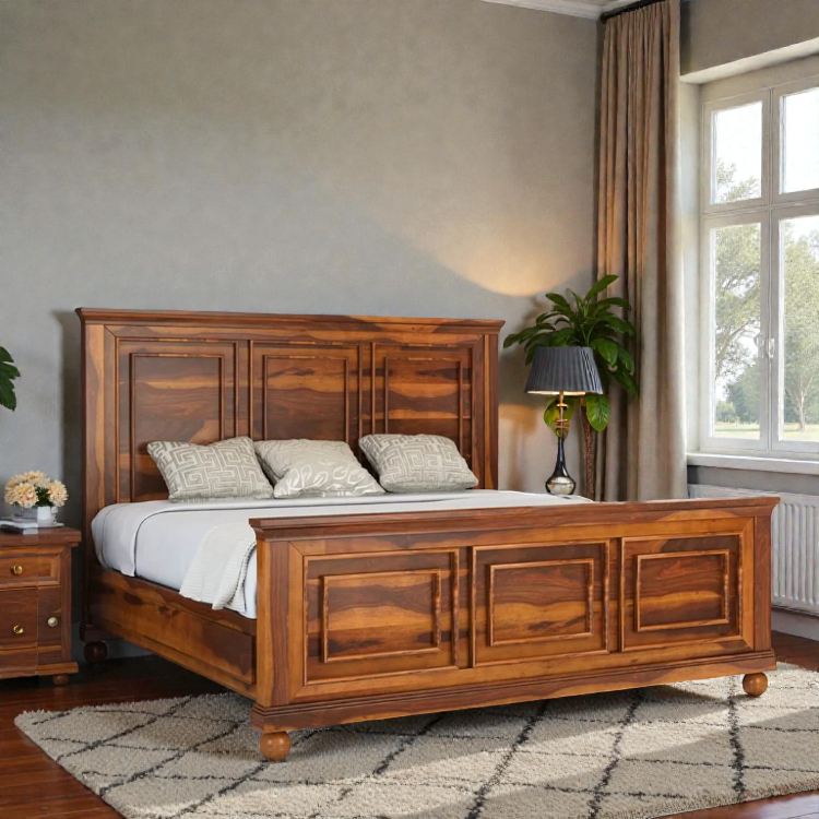 Aarav Royale Solid Sheesham Wood Bed | Premium King & Queen Size Wooden Bed for Indian Homes