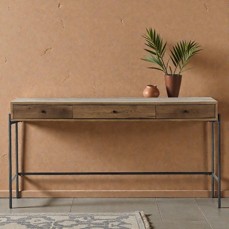 The Aarav Craft Solid Mango Wood Storage Writing Desk is a perfect blend of modern functionality and timeless craftsmanship. Designed for contemporary homes and workspaces, this desk features a solid mango wood top paired with a sleek iron frame that ensures strength and durability.