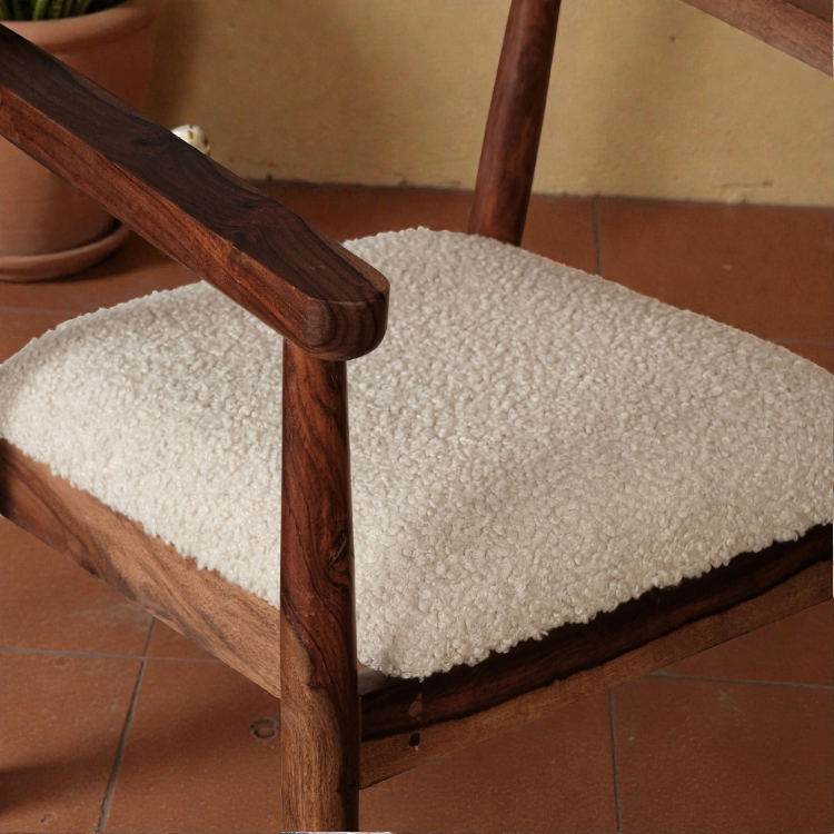 Aarav Luxe Solid Wood Boucle Arm Chair | Handcrafted Designer Accent Chair for Living Room