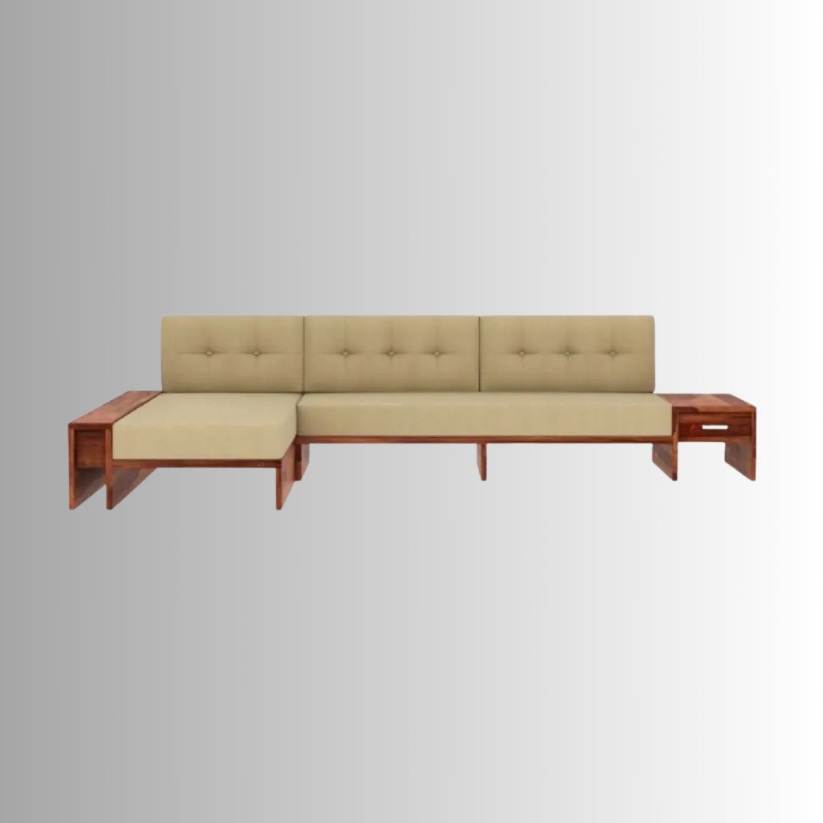 The Aarohan Prime L-Shape Solid Wood Sofa Set is a perfect blend of comfort, functionality, and timeless wooden craftsmanship. Designed for modern Indian homes, this L-shaped sofa offers generous seating along with built-in side storage drawers, making it ideal for compact and spacious living rooms alike.