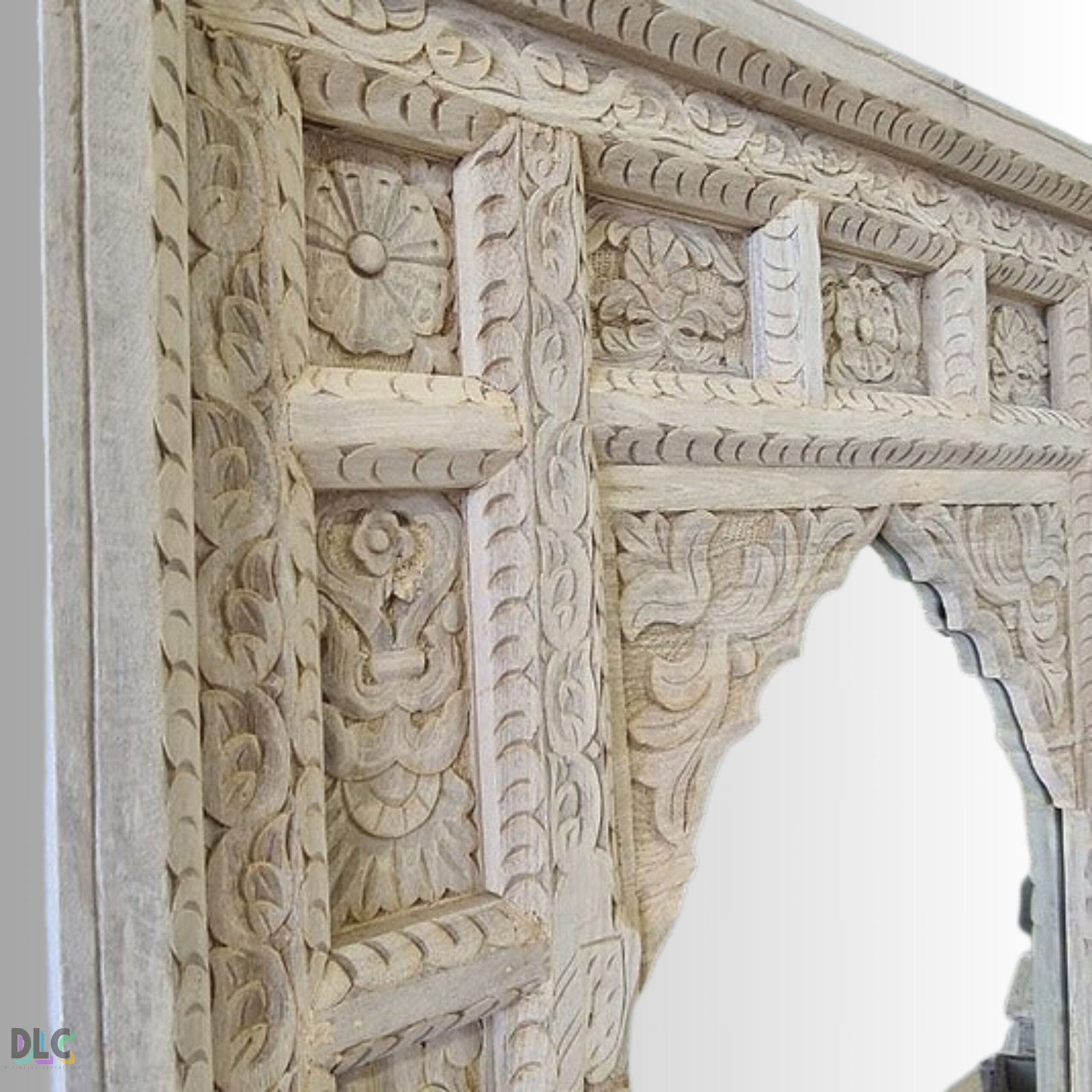 Its soft antique white finish highlights every carved detail, making it a perfect accent for living rooms, foyers, bedrooms, pooja areas, or boutique-style interiors. Designed to be both decorative and functional, this mirror elevates walls with depth, artistry, and timeless elegance.