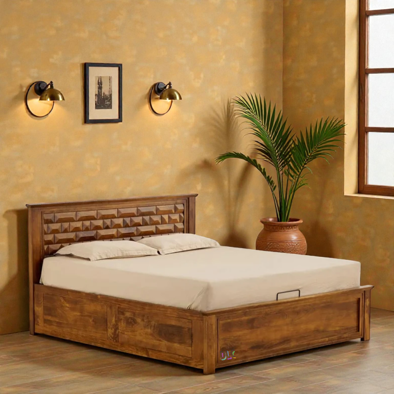 Aranya Solid Sheesham Wood Storage Bed | Handcrafted Wooden Bed for Indian Homes