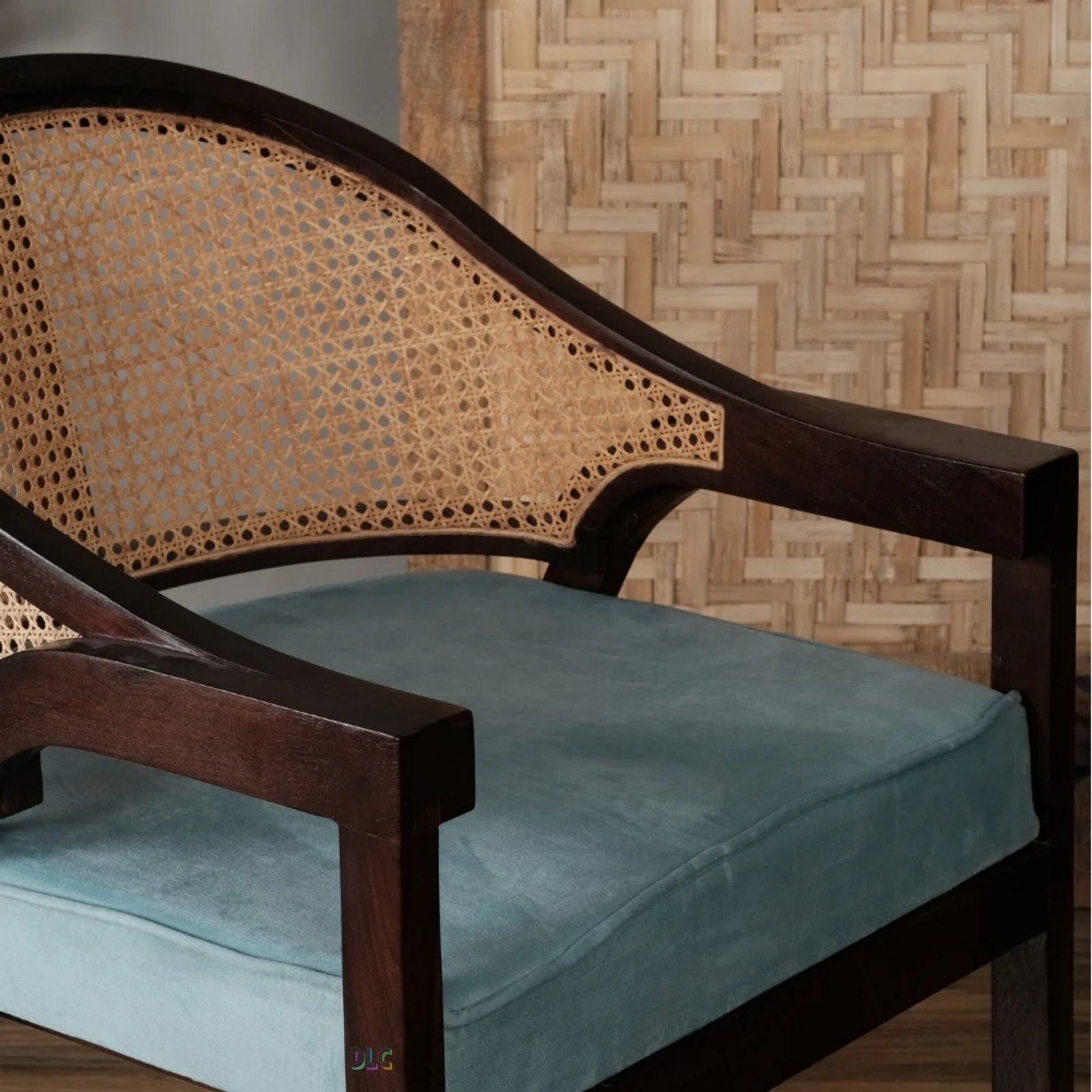 Designed for Indian homes, apartments, and boutique interiors, this chair works effortlessly as a living room accent chair, bedroom reading chair, or lounge seating option. The breathable rattan back keeps seating cool in Indian climates, while the solid wood frame ensures strength, stability, and long-lasting performance.