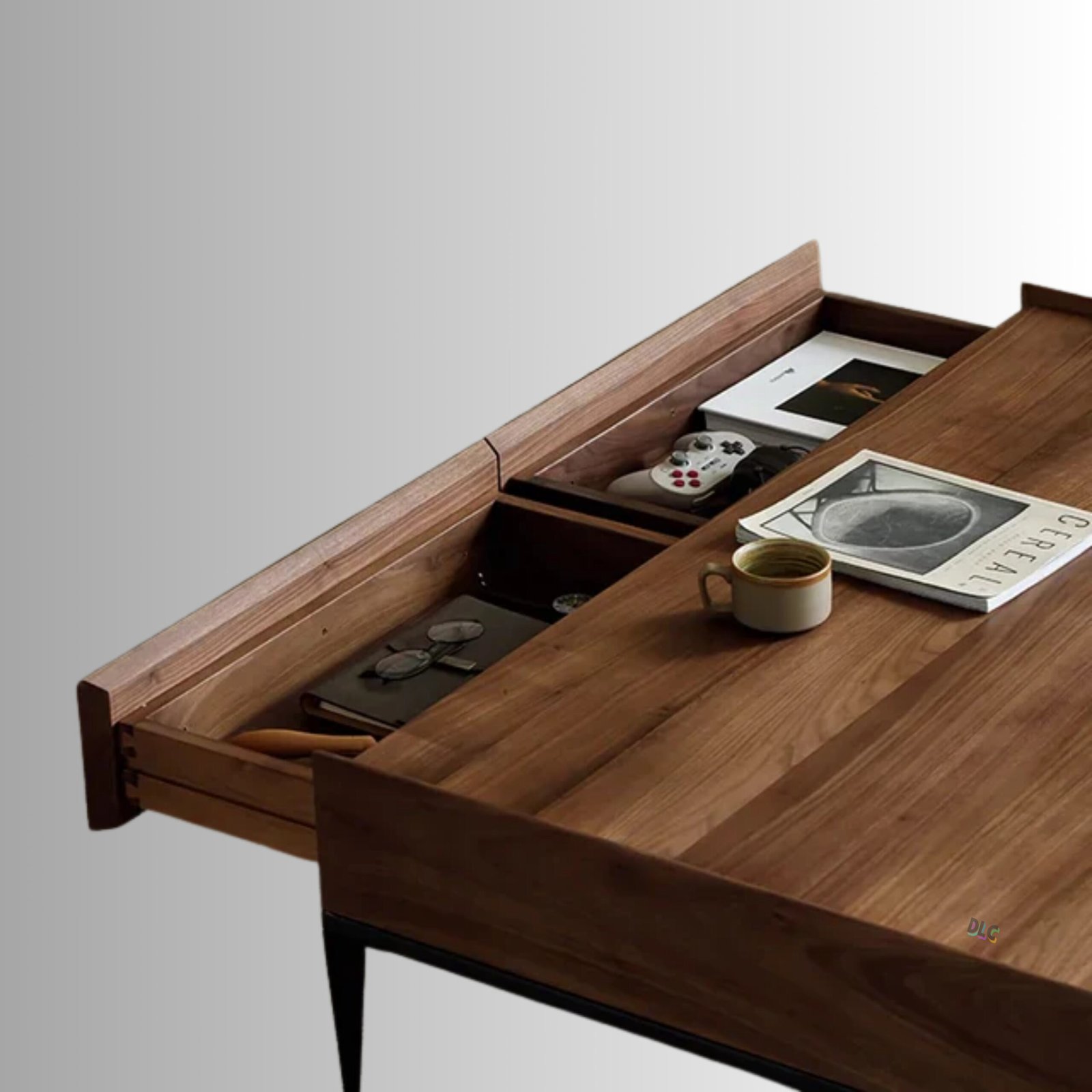 The rich walnut finish enhances the natural wood grain, adding warmth and sophistication to contemporary and modern interiors. Designed for everyday use, this table offers ample surface area and concealed storage—ideal for keeping your living room organized while maintaining a clutter-free aesthetic.