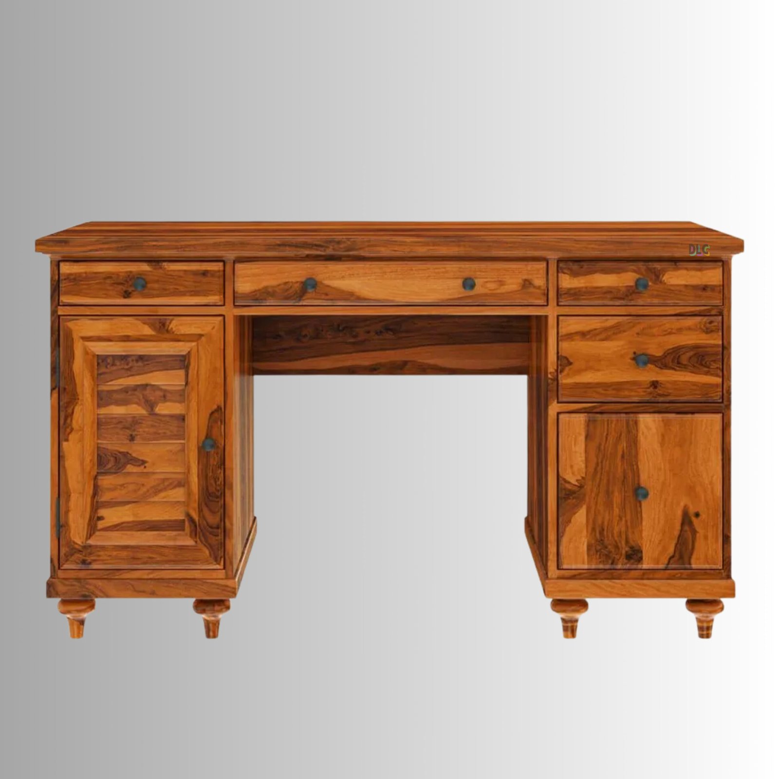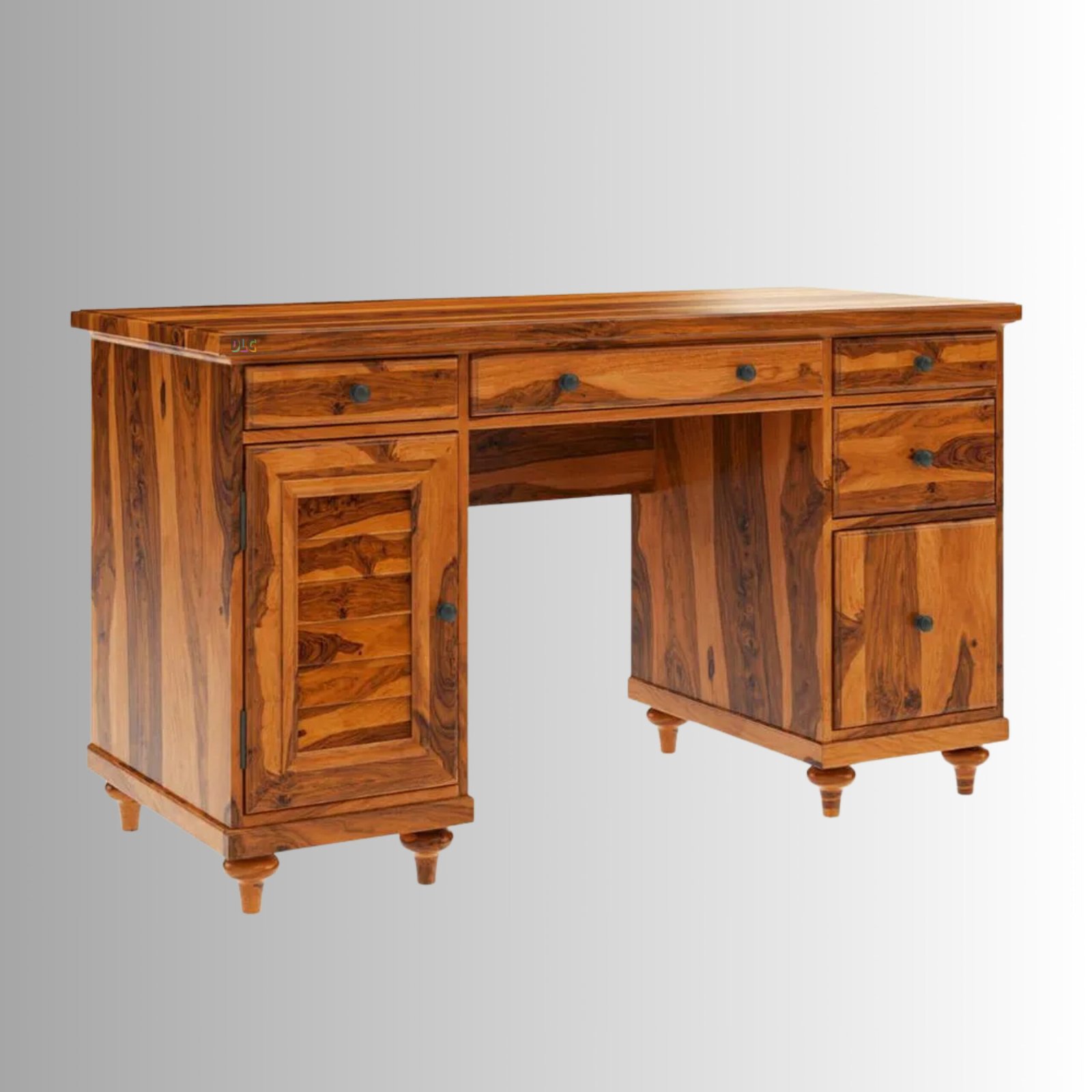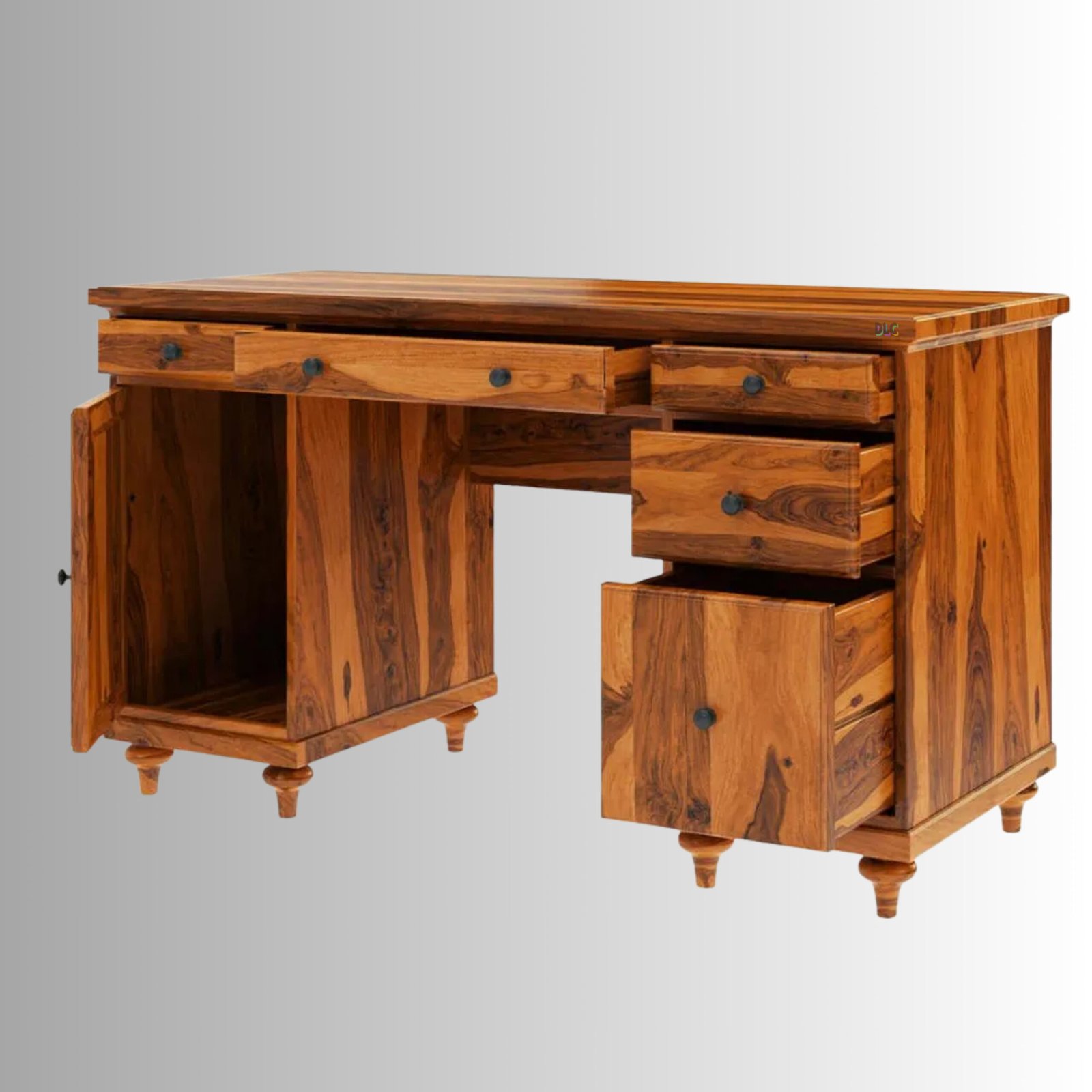 Arjun Rustic Solid Wood Computer Desk with Storage | Wooden Office Desk India