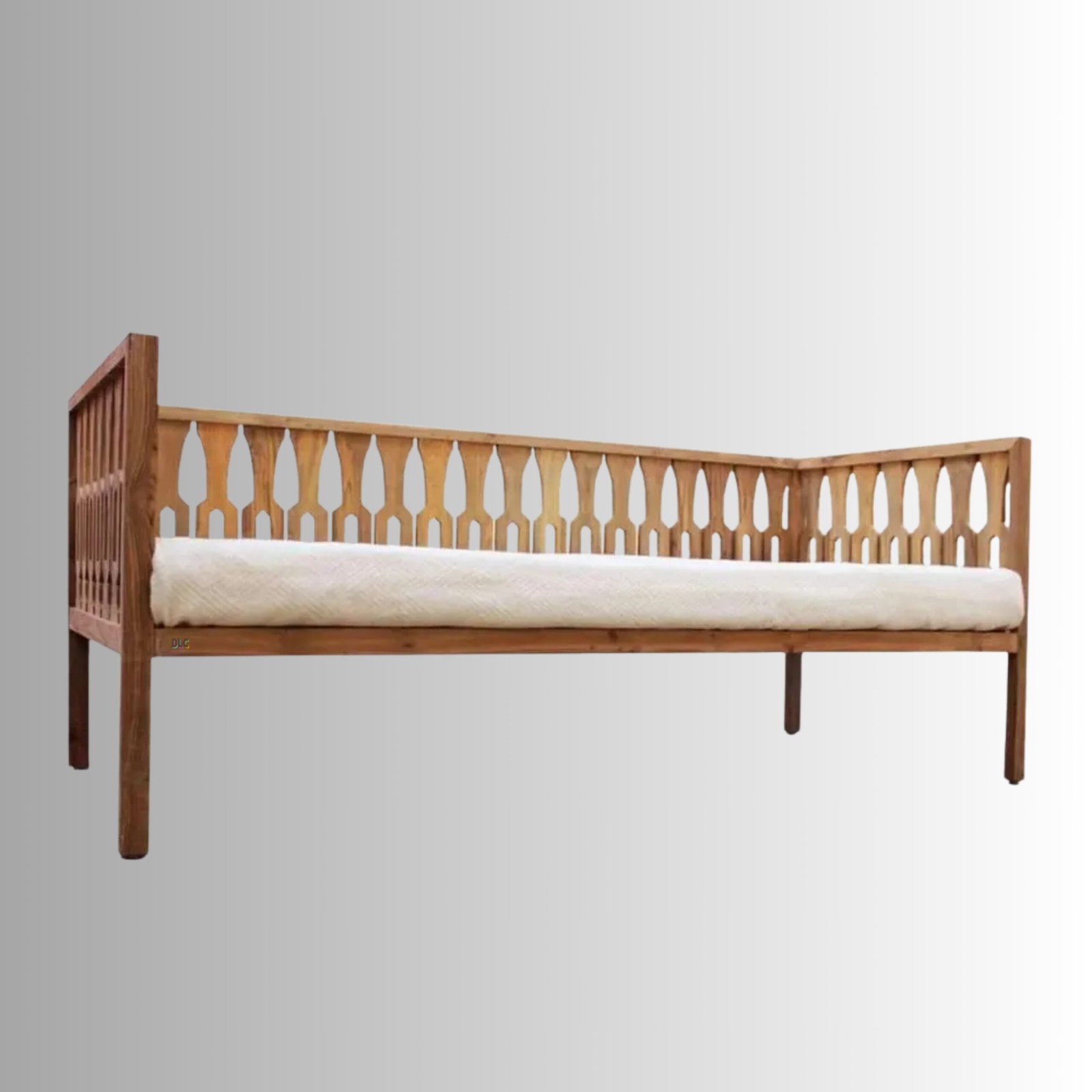 Aura Solid Wood Day Sofa | Natural Finish Wooden Sofa