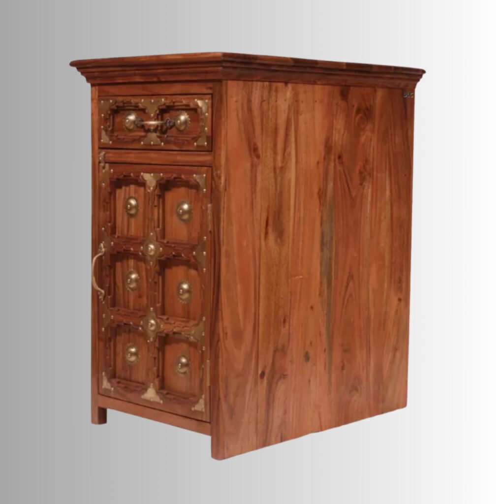 Exotic Heritage Carved Night Stand – Solid Acacia Wood Bedside Table