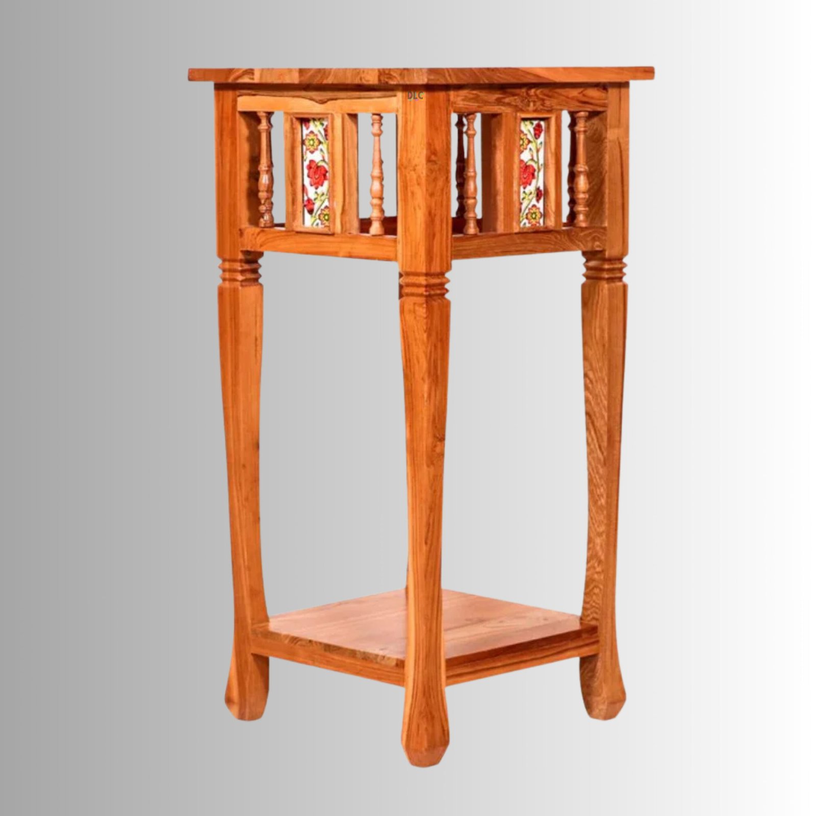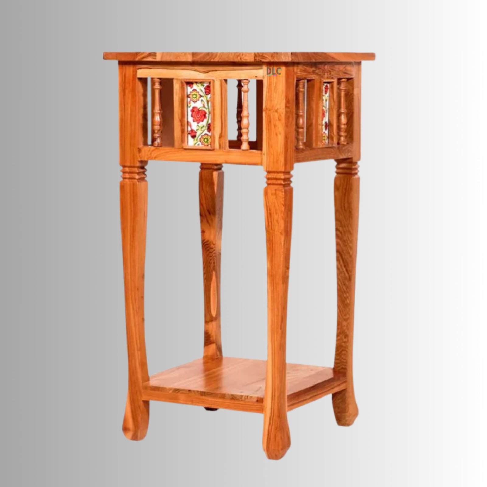 Royal Acacia Ceramic Tile Side Corner Table with Lower Shelf