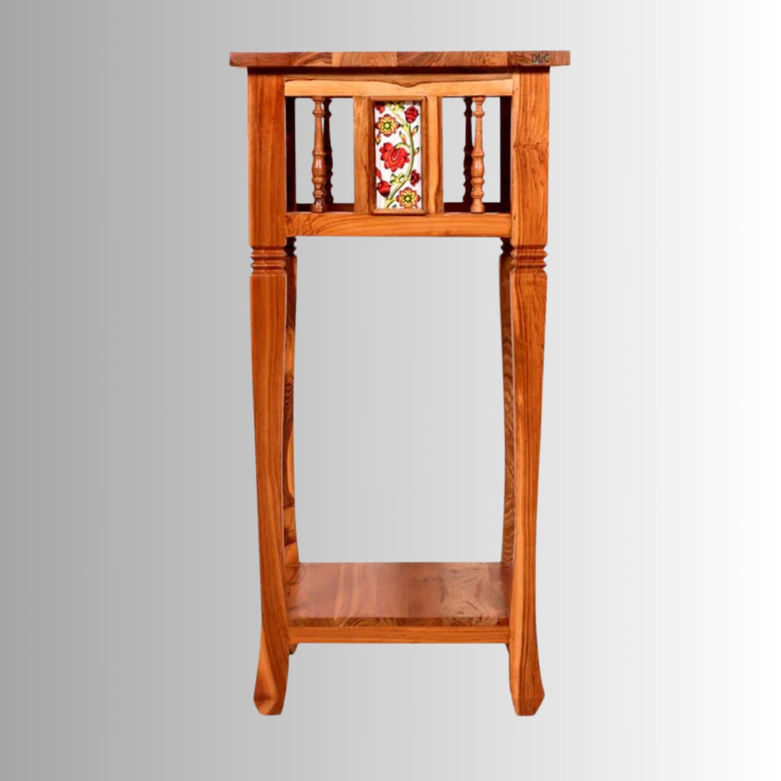 The tall, slim design makes it ideal for corners, while the lower shelf provides additional space for décor, books, or essentials. Its warm brown finish highlights the natural wood grain, making it a perfect fit for ethnic, vintage, and contemporary interiors.