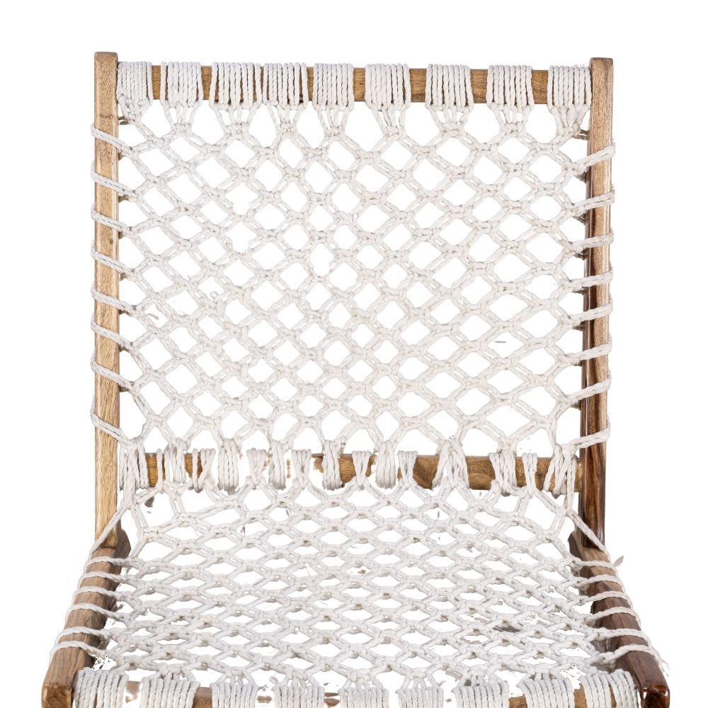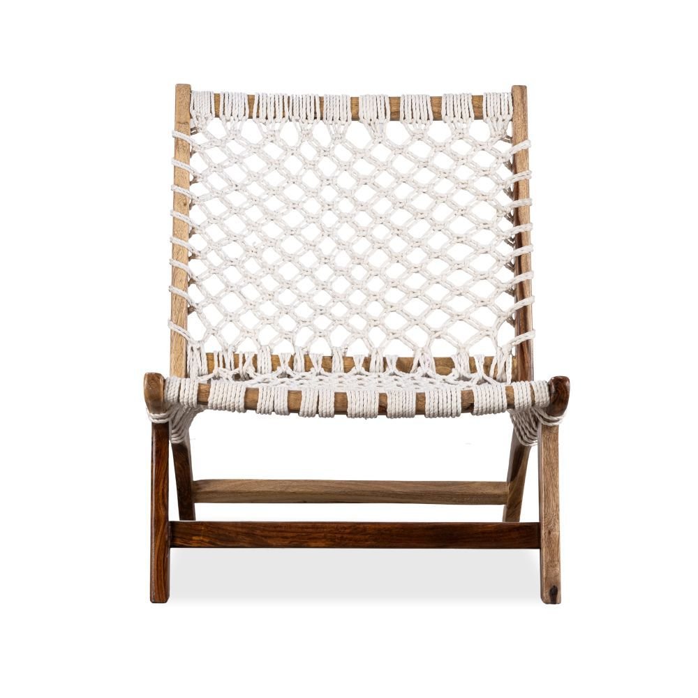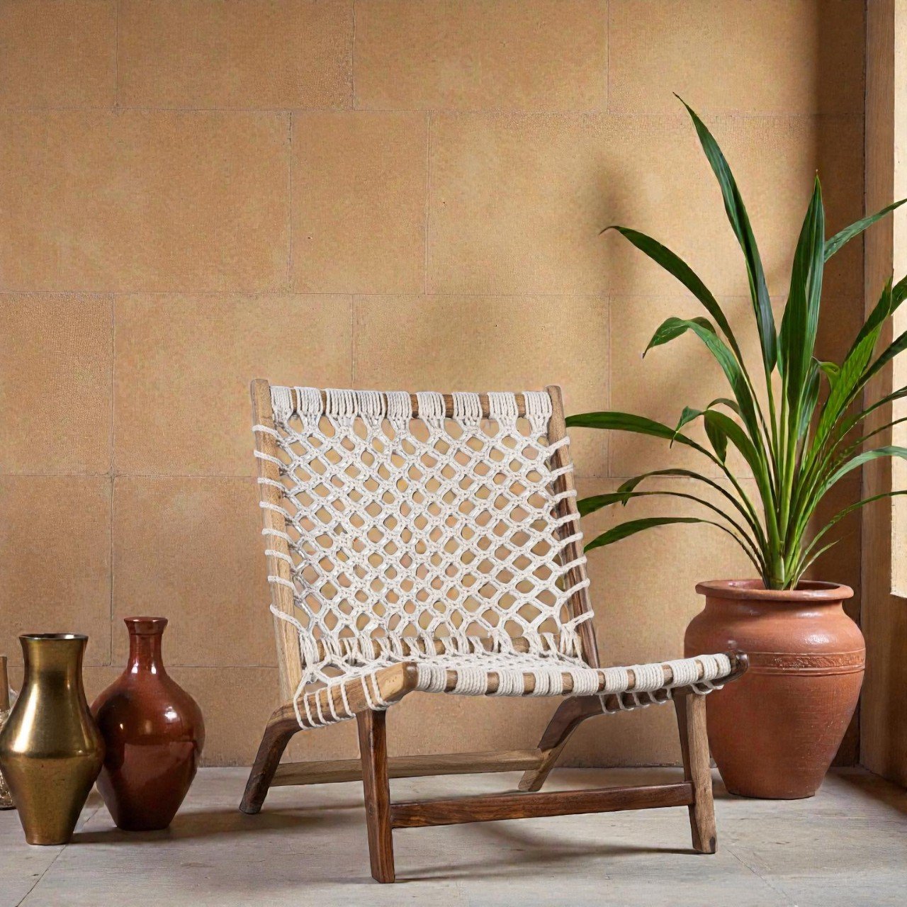 Aranya White Macrame Chair | Handwoven Lounge Chair in Solid Acacia Wood (24 × 34 × 32 in)