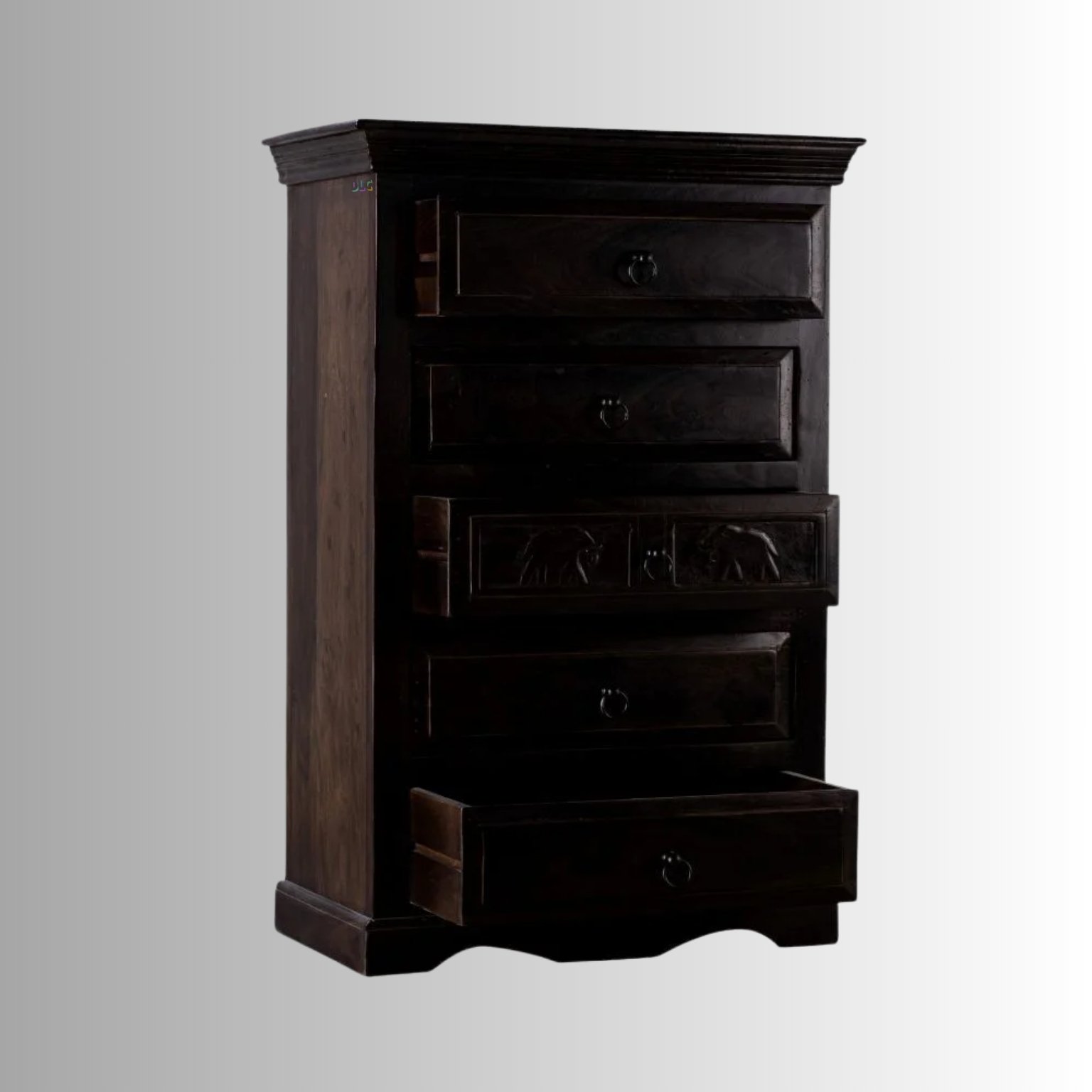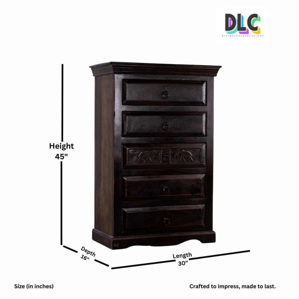 Royal Elephant Handcrafted Sheesham Wood Chest of Drawers – Dark Brown