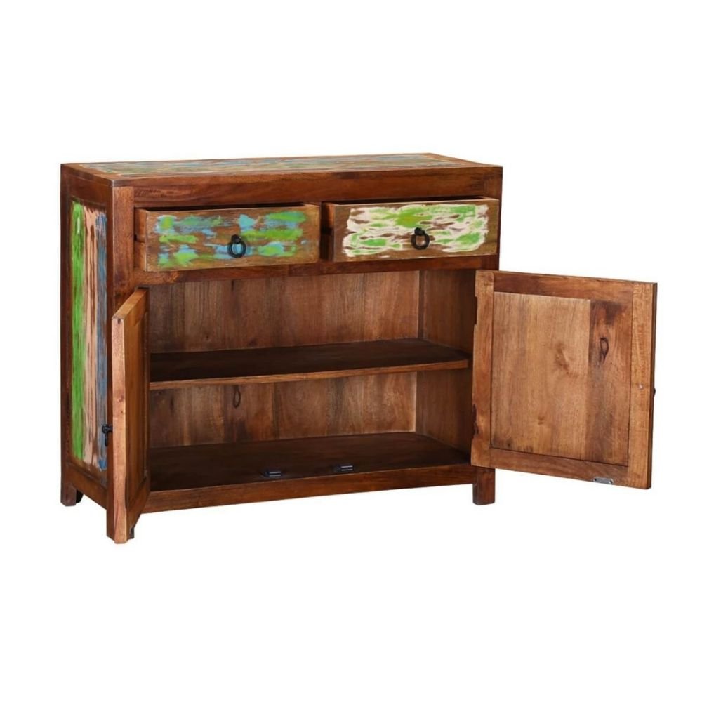 Nayora – Hand-Carved Sideboard with Bohemian Charme (120cm) | Artistic Solid Wood Boho Cabinet