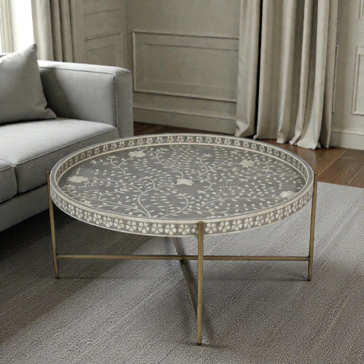 Ivory Crest Round Bone Inlay Coffee Table (90 cm)