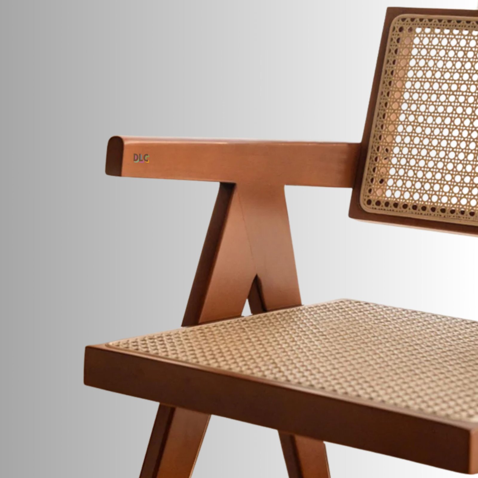 The Kaira CaneCraft Walnut Wood Armchair blends timeless craftsmanship with modern simplicity. Built with a strong solid wood frame and detailed with breathable woven cane on the seat and backrest, this armchair offers both comfort and visual warmth.