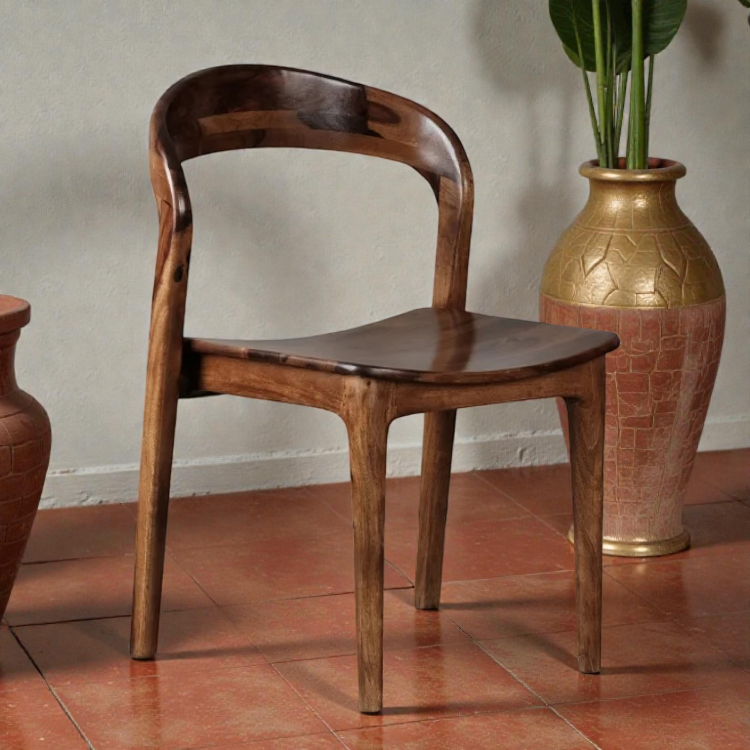 Its gently curved backrest and clean silhouette make it ideal for Indian dining rooms, cafes, study corners, or accent seating. The sturdy joinery and smooth finish reflect skilled Indian craftsmanship, ensuring long-lasting use without compromising on style.