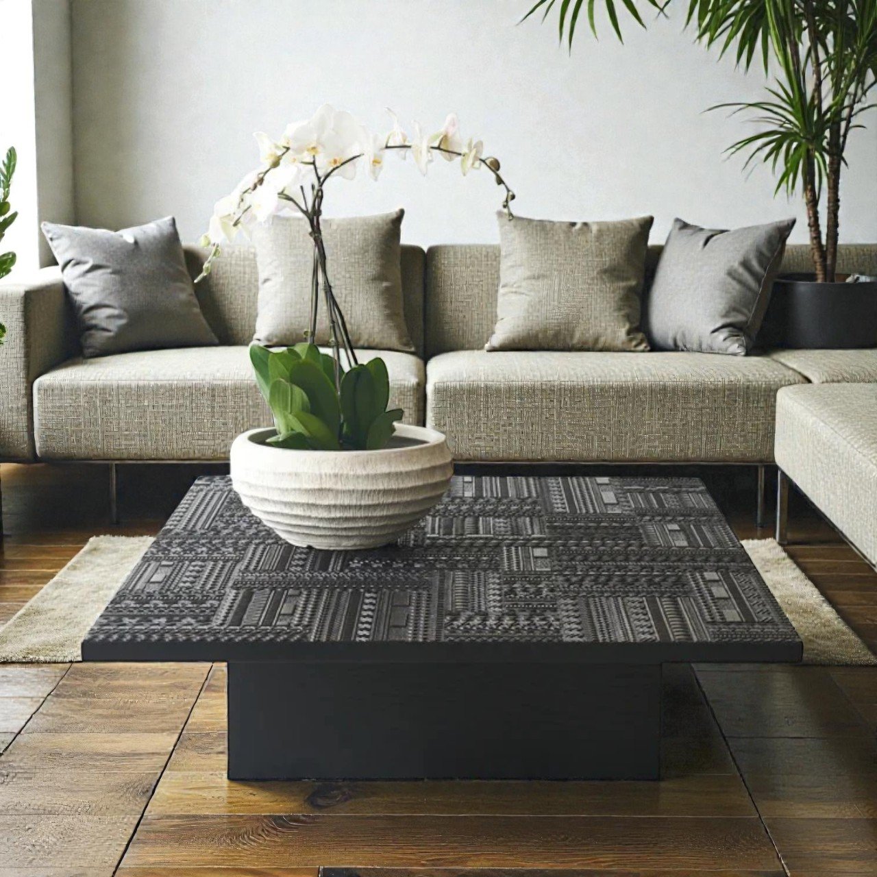 Bring bold sophistication to your living space with the Nocturne Grid Solid Wood Coffee Table, a striking centerpiece crafted for modern and luxury interiors. Made from premium solid mango wood, this table features an intricately carved geometric surface that creates a rich visual texture and artisanal depth.
