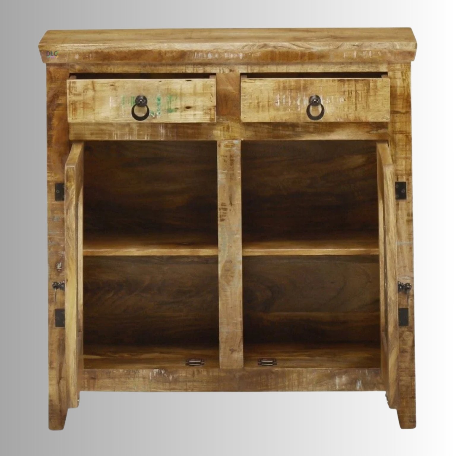 Add authentic rustic character and timeless craftsmanship to your interiors with this Reclaimed Timber Solid Mango Wood Sideboard Cabinet. Expertly handcrafted from reclaimed solid mango wood, this sideboard showcases rich natural textures, aged wood tones, and beautifully carved panel details that highlight true artisanal workmanship.