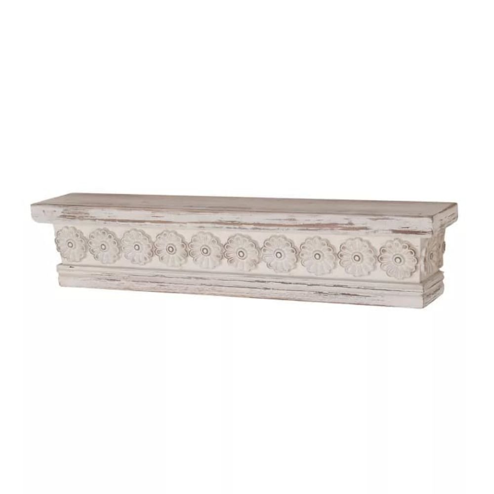Bring subtle elegance and traditional charm to your walls with the Shailja Hand-Carved Mini Floating Wall Shelf. Crafted from 100% solid mango wood, this compact floating shelf features delicate carved detailing and a soft rustic white finish that blends beautifully with Indian, vintage, and farmhouse interiors.
