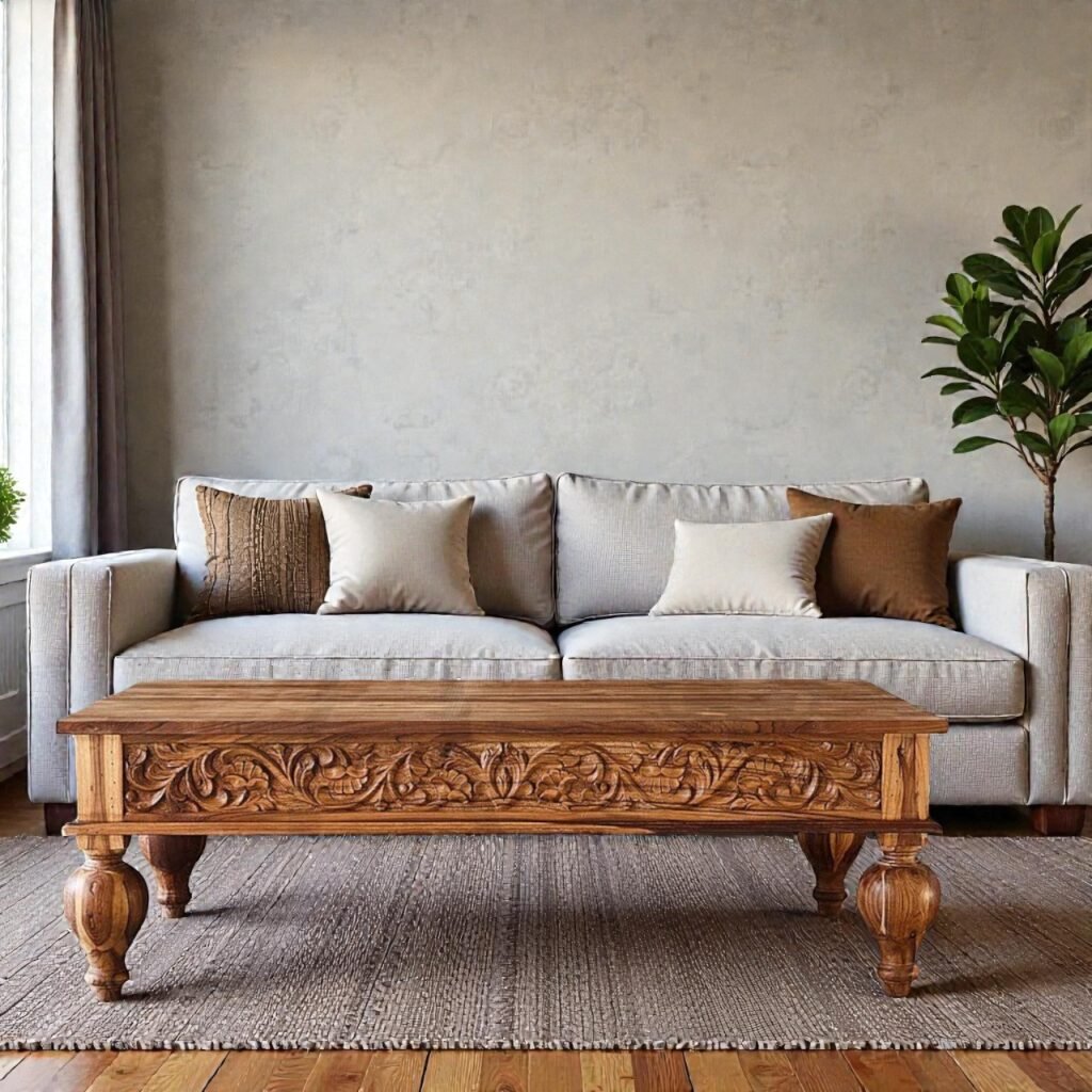 Carved Heritage Solid Wood Coffee Table (110 cm)