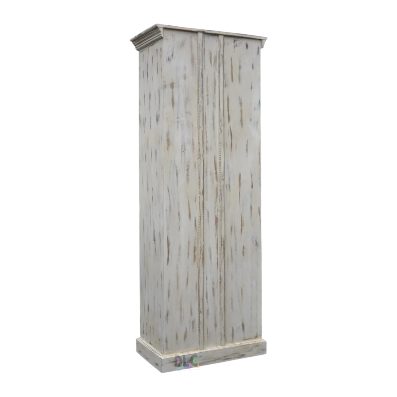 Bring timeless Indian craftsmanship into your home with the Vaishnavi Hand-Carved Solid Wood Display Cabinet. Expertly handcrafted from solid wood, this tall display cabinet features intricate floral carvings, a soft aged whitewashed finish, and a glass-front door that beautifully showcases décor, collectibles, books, or crockery. The slim vertical design makes it ideal for living rooms, dining areas, hallways, or boutique-style interiors.