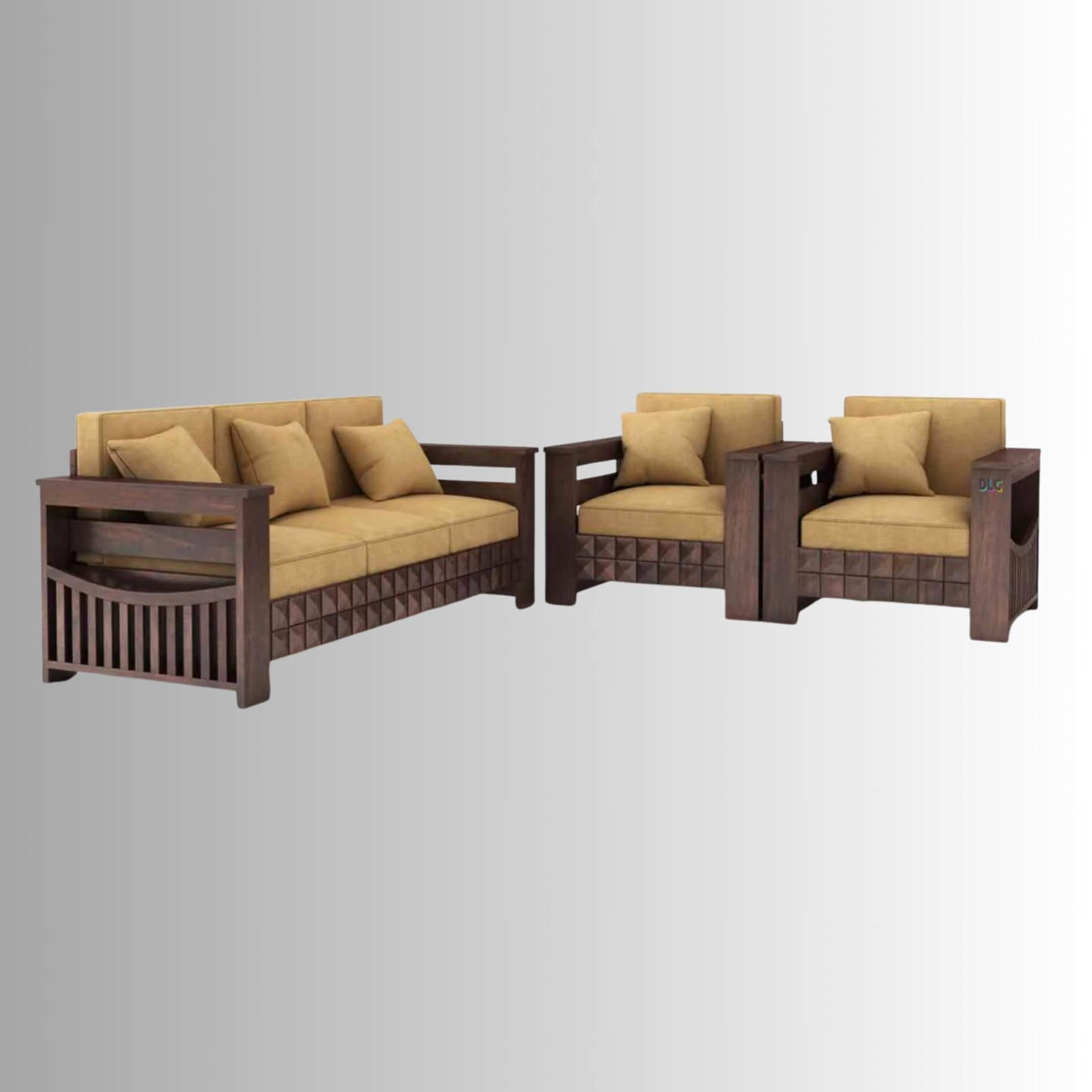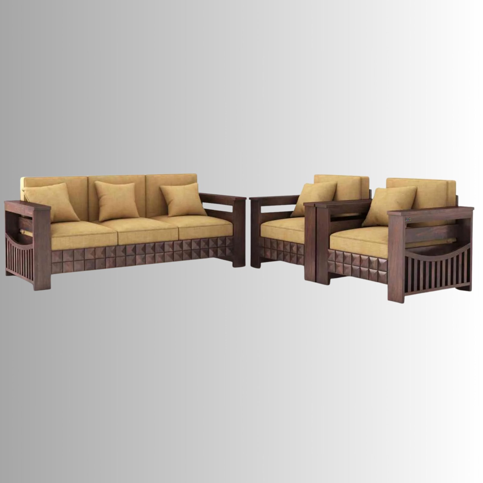 Vedika Solid Wood 5 Seater Sofa Set (Walnut Finish | 3+1+1 Configuration)