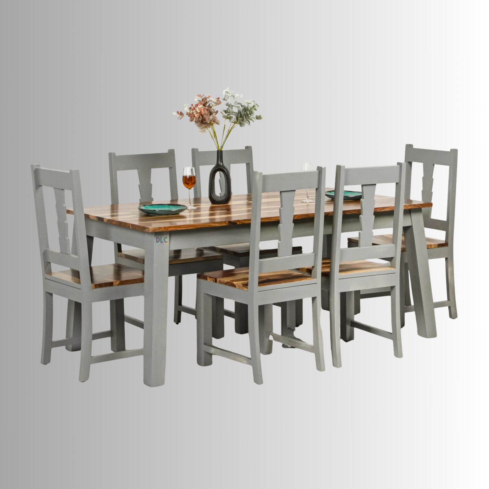 Vidur Flint Grey Solid Wood Dining Set (6 Seater)