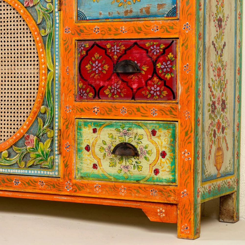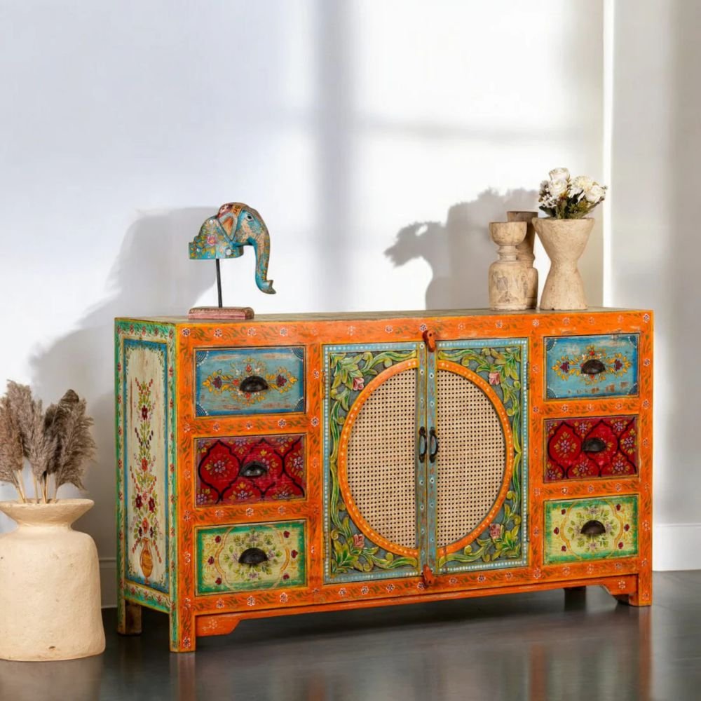 Vintage Ibiza Style Hand-Painted Mango Wood Sideboard 160cm