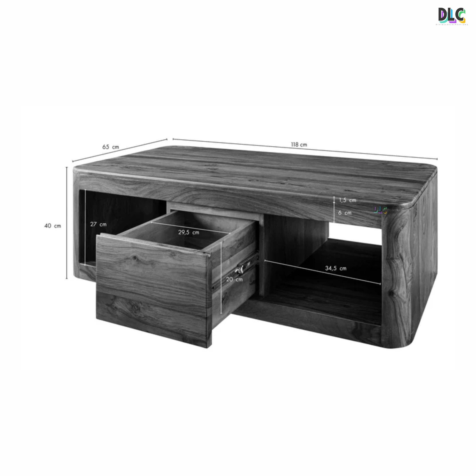- Dimensions: Width: 118 cm, Depth: 65 cm, Height: 40 cm