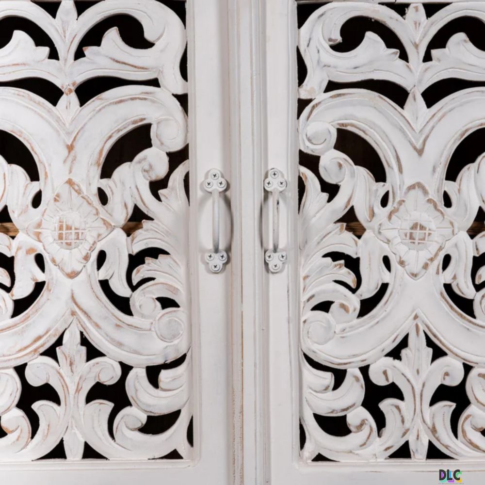 White Jali Carved Bookshelf – Handcrafted Wooden Elegance