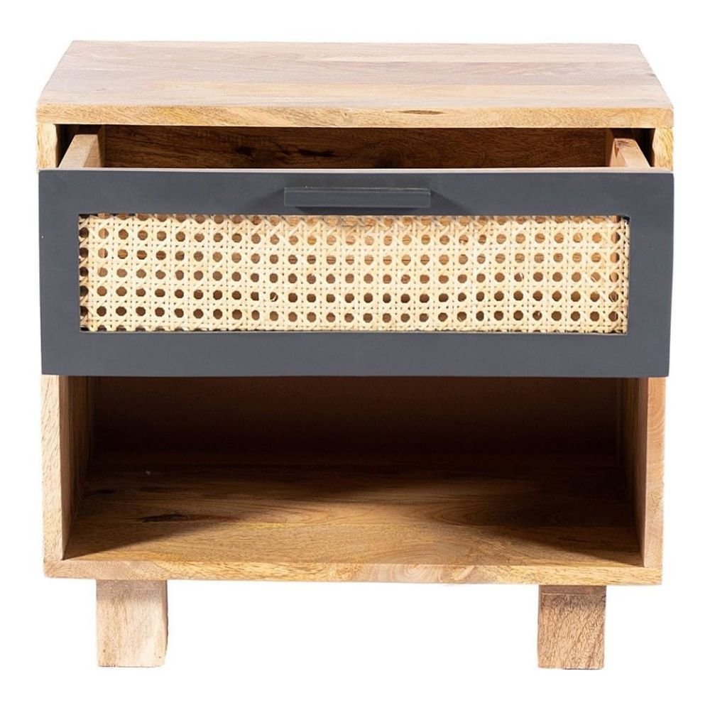 Add effortless warmth and modern charm to your bedroom with the Cavaro Cane Wood Nightstand. Expertly handcrafted from premium mango wood, this bedside table features a beautifully woven cane drawer front that brings texture, lightness, and a relaxed contemporary vibe to your space.