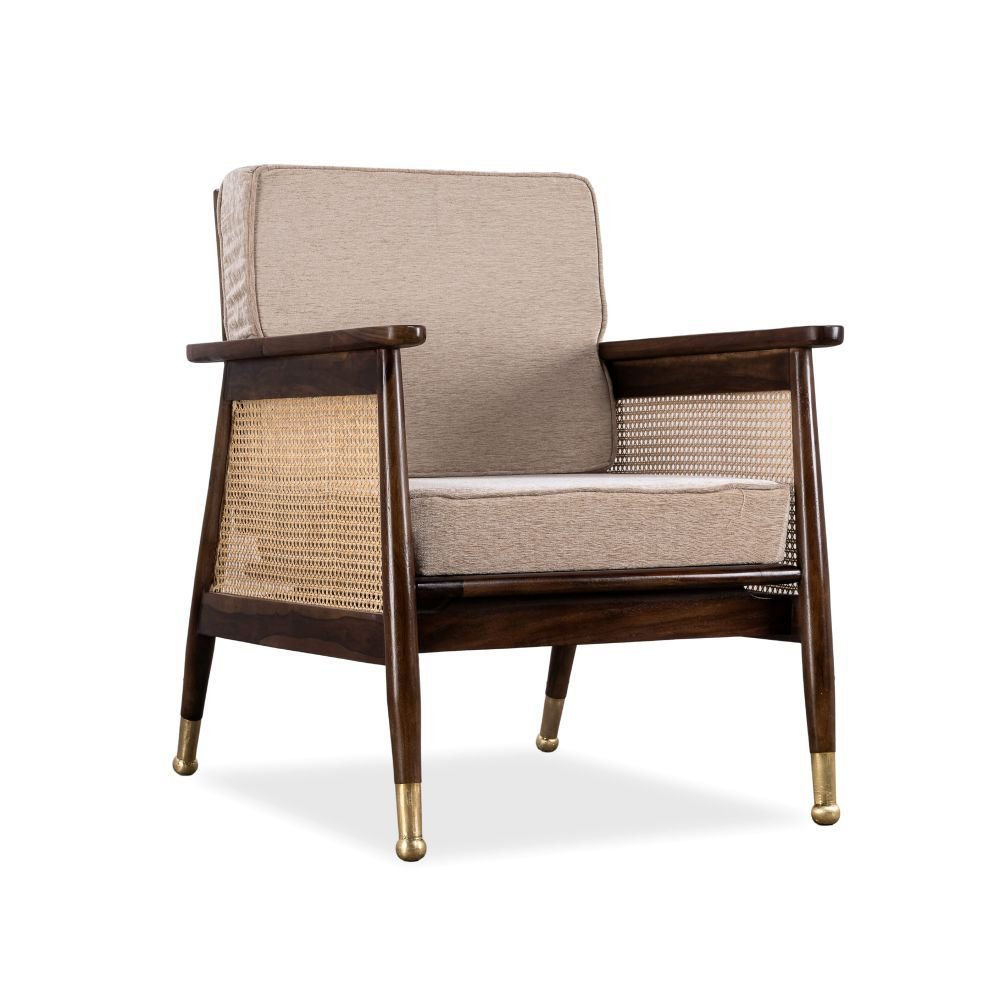 Aria Solid Wood Rattan Accent Chair | Handcrafted Wooden Chair India