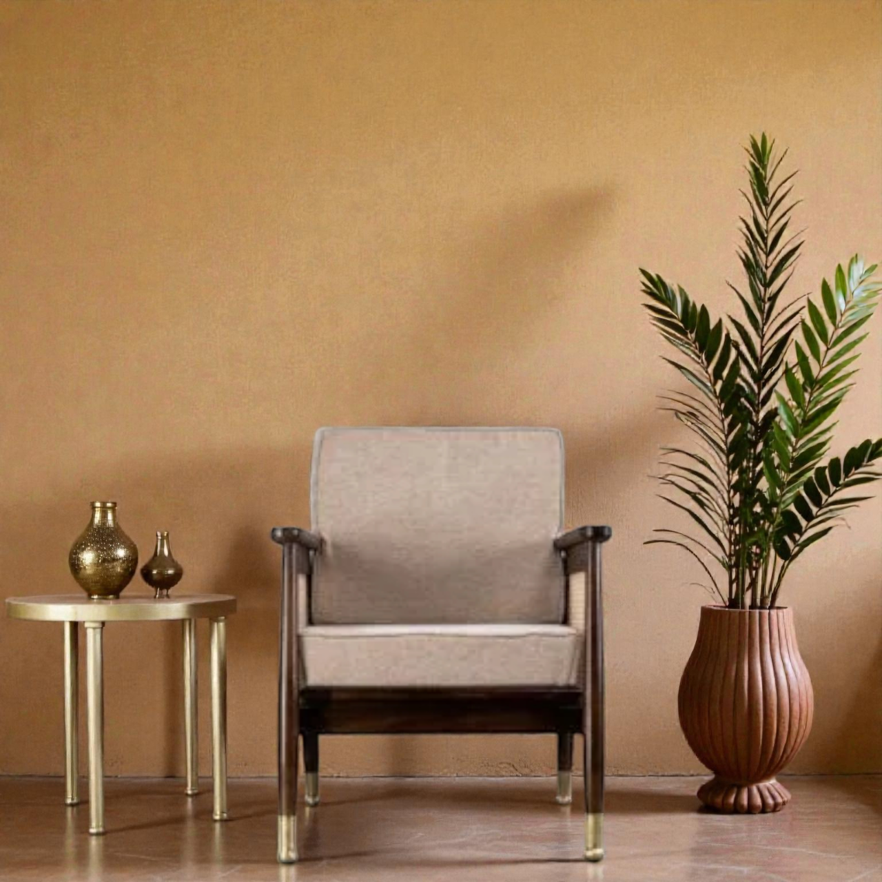 Arnav Solid Wood Upholstered Accent Chair – Handcrafted Living Room Chair