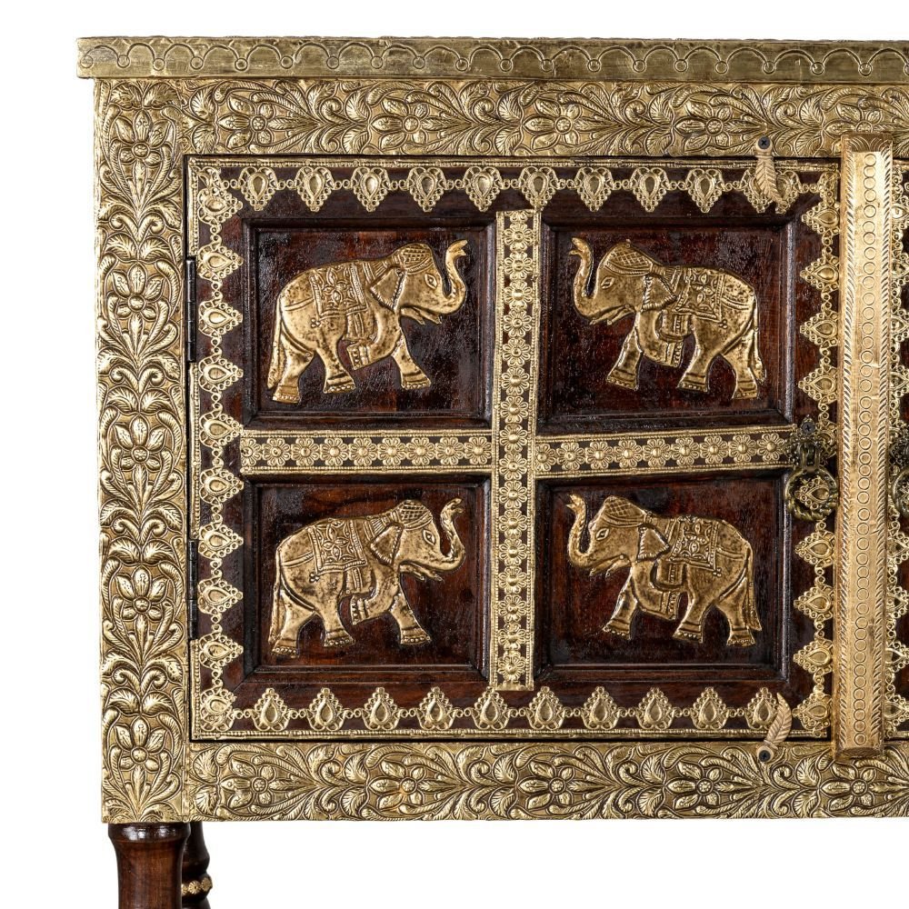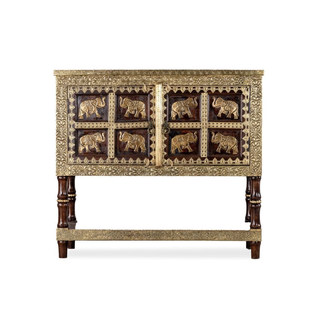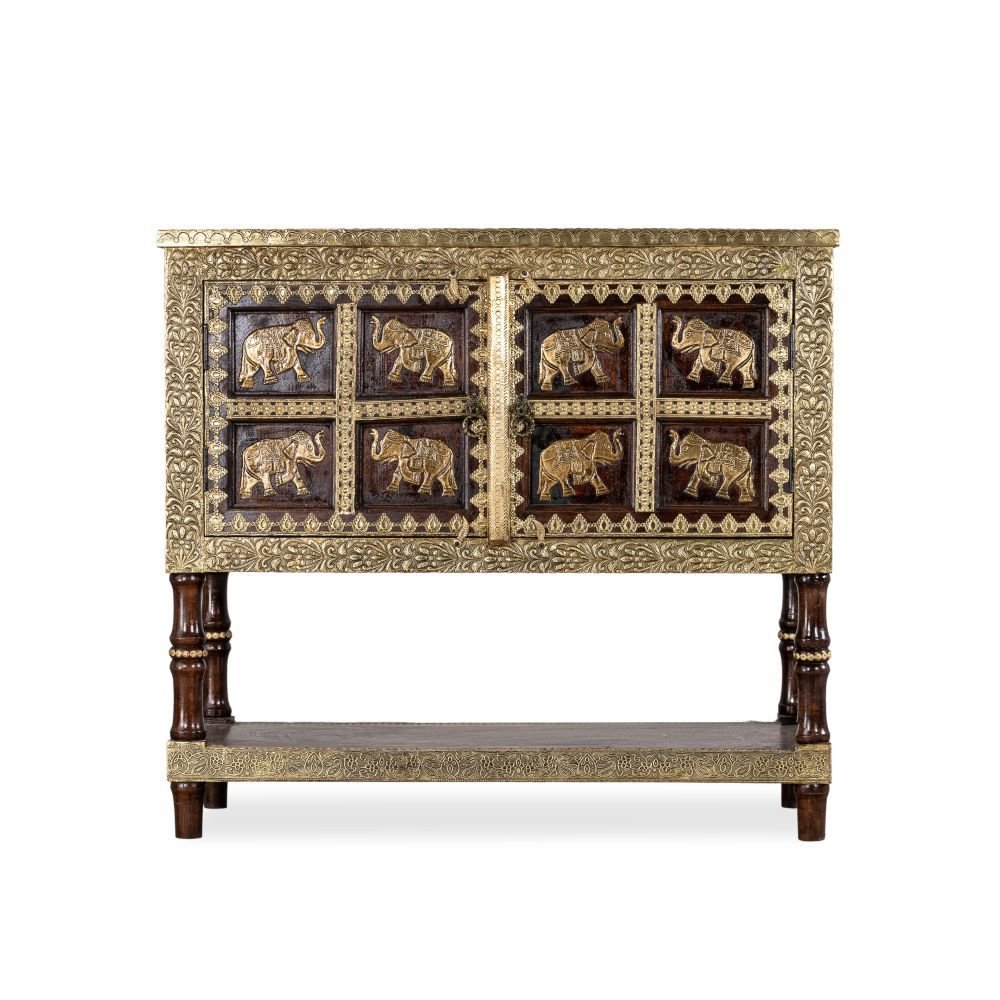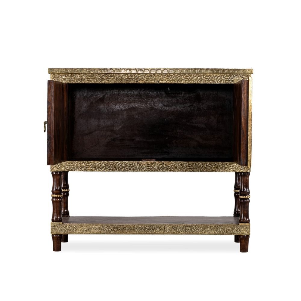 Wooden Brass Fitted Storage Cabinet (Teak)
