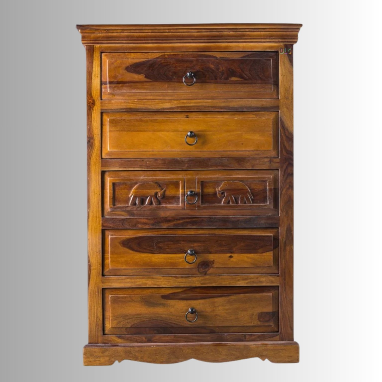 Royal Elephant Handcrafted Sheesham Wood Chest of Drawers – Dark Brown