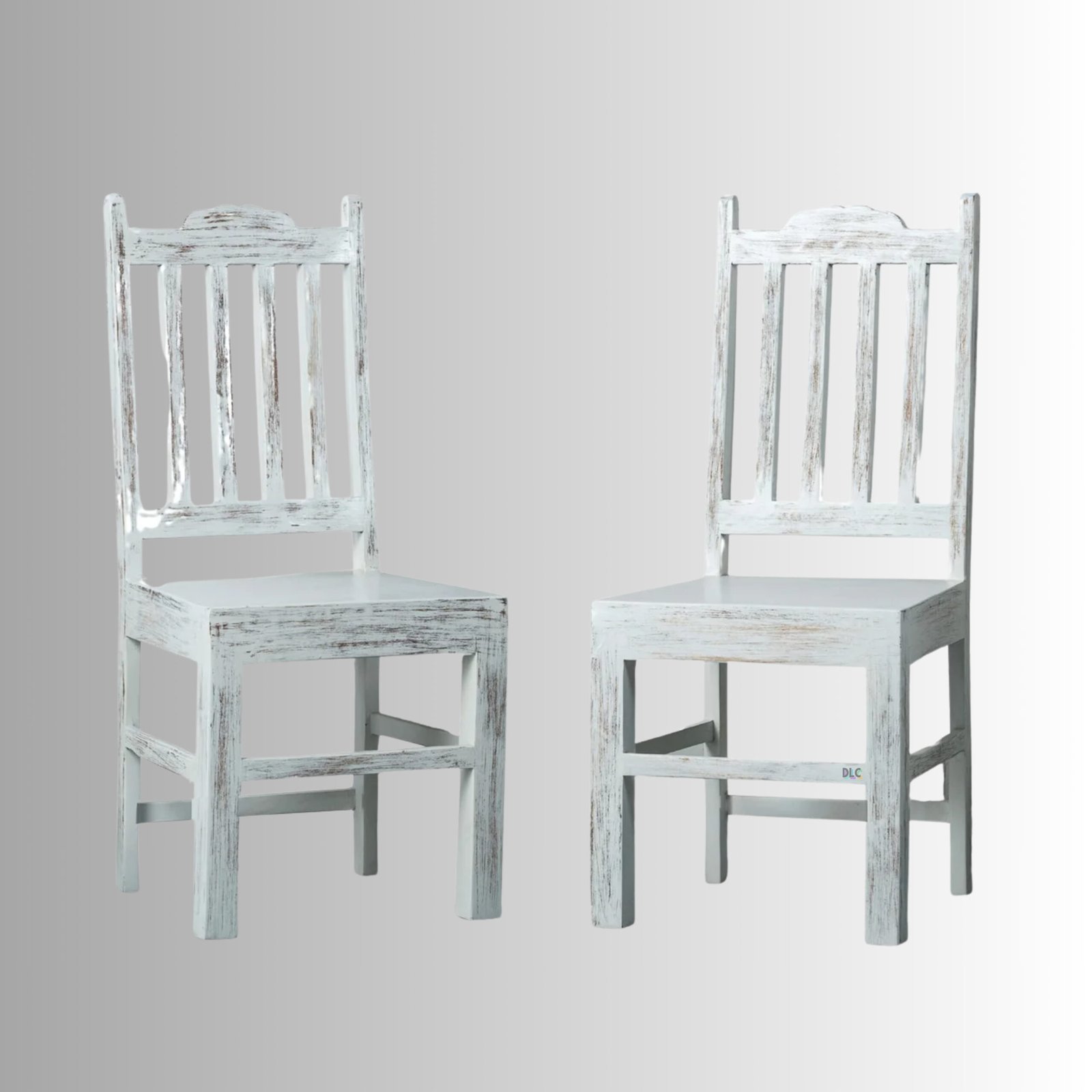 Wooden Dining Chair (White Distress) β Set of Two