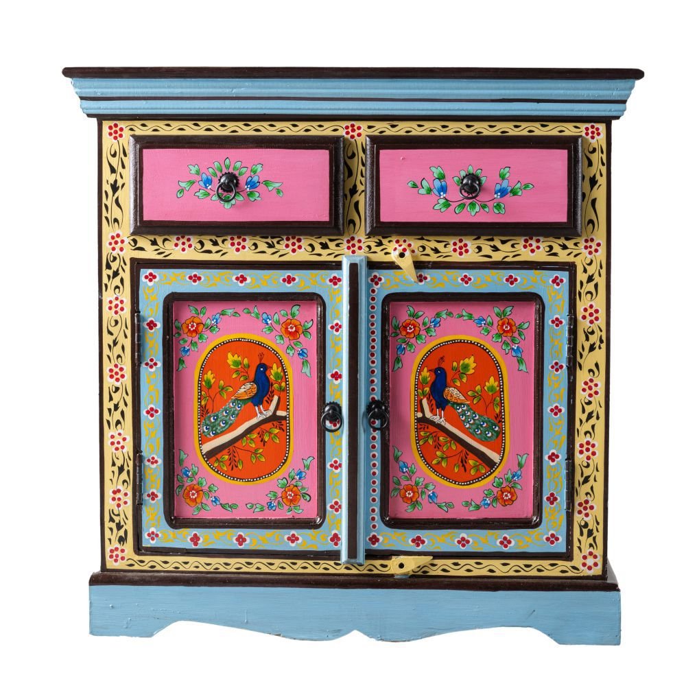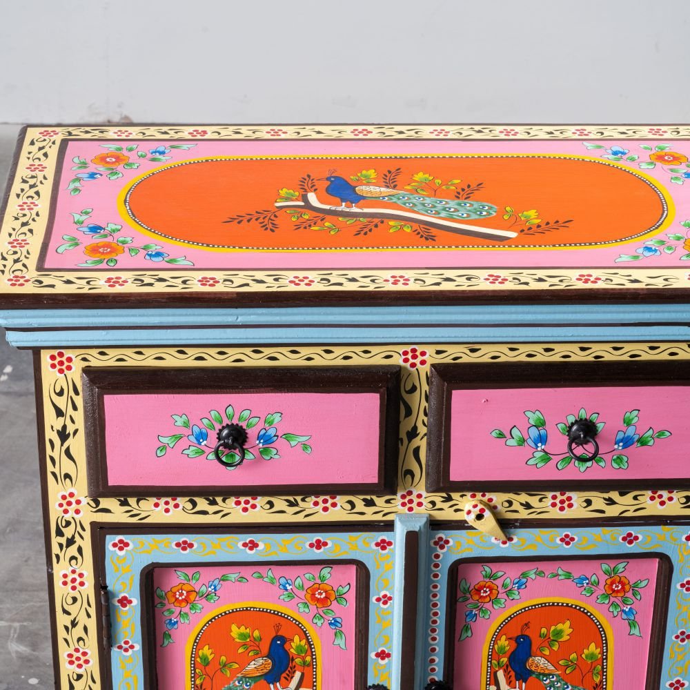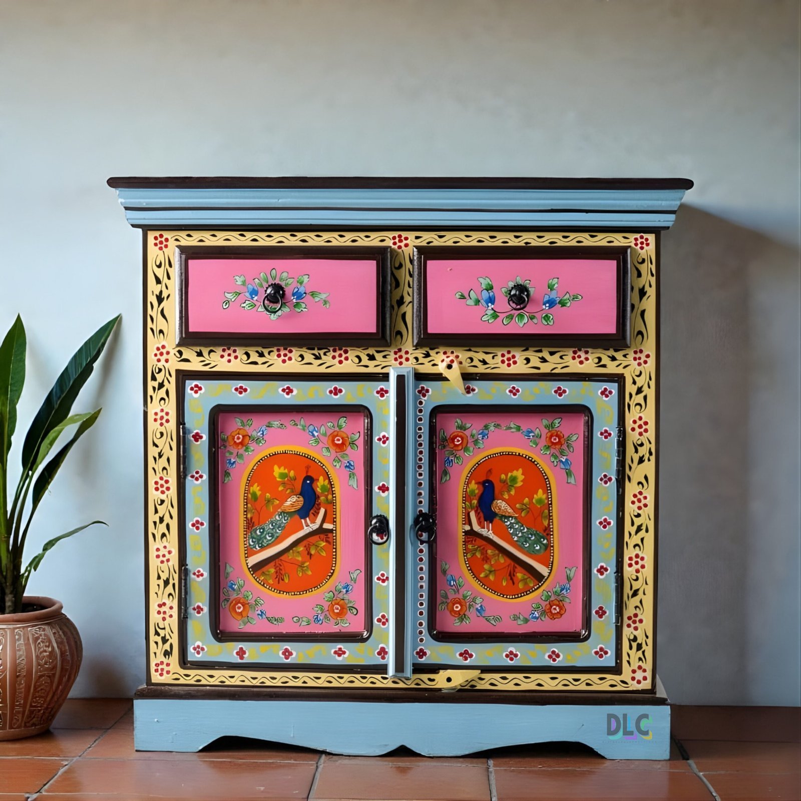 Artisan Hand-Painted Solid Acacia Wood Cabinet | Traditional Indian Design | Made in India