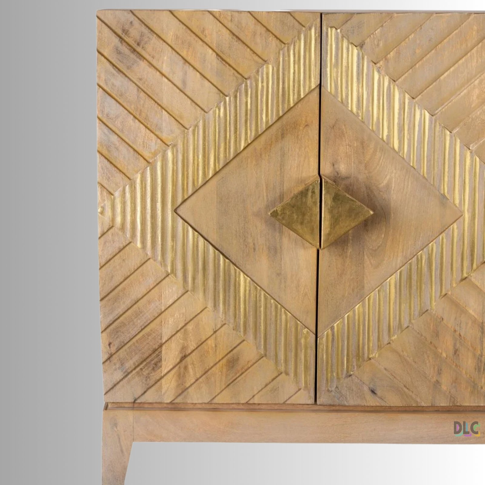 Bring bold modern elegance into your space with this Wooden Modern Geometric Dual Tone Mango Wood Sideboard Cabinet. Expertly crafted from premium solid mango wood, this statement piece features a striking geometric panel design enhanced with a sophisticated dual tone finish and metallic accents.