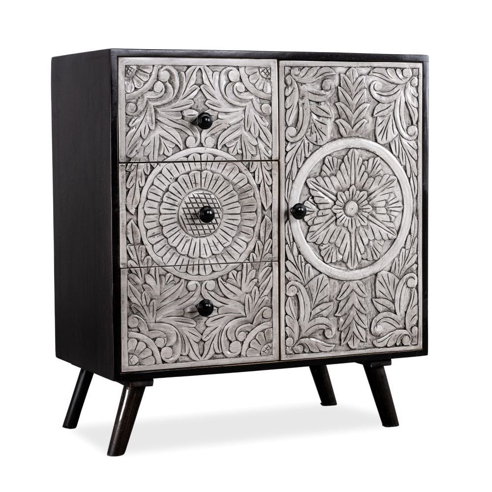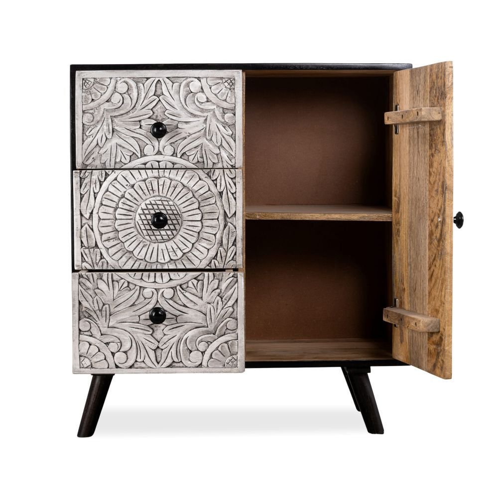 Nayora – Hand-Carved Sideboard with Bohemian Charme (120cm) | Artistic Solid Wood Boho Cabinet