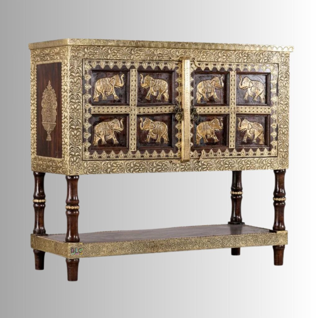 Royal Gajraj Brass Inlay Wooden Storage Cabinet – Teak Finish