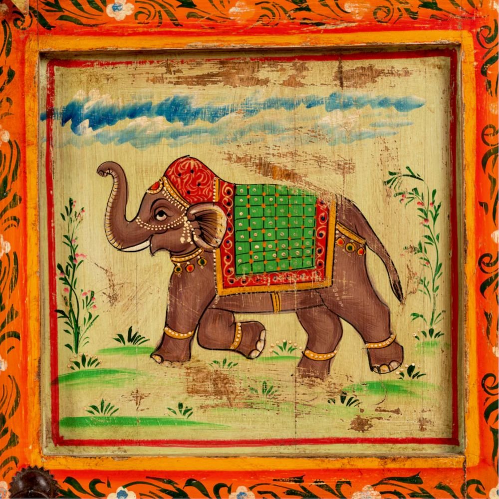 Artisan Hand-Painted Solid Acacia Wood Cabinet | Traditional Indian Design | Made in India